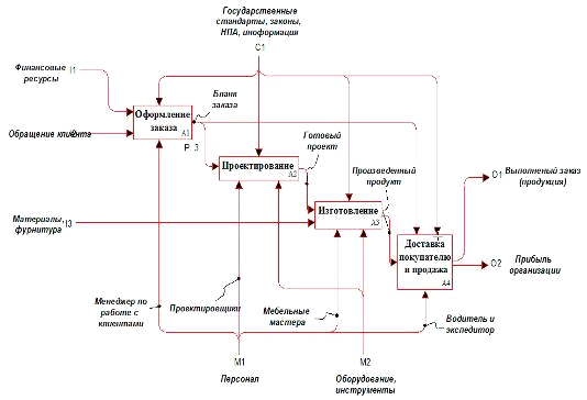 Выход системы: выполненный заказ (продукция), прибыль организации.